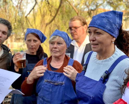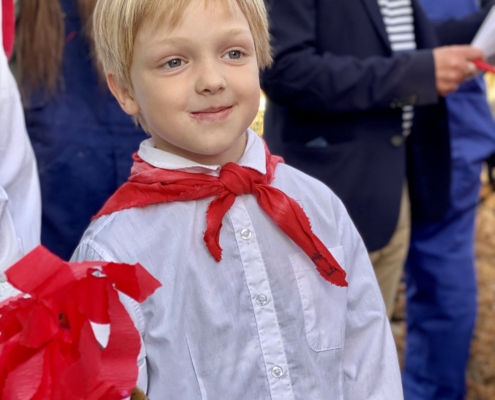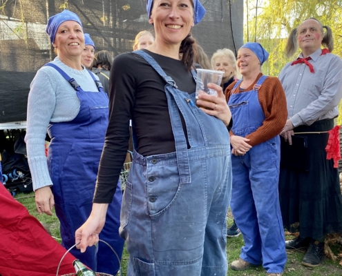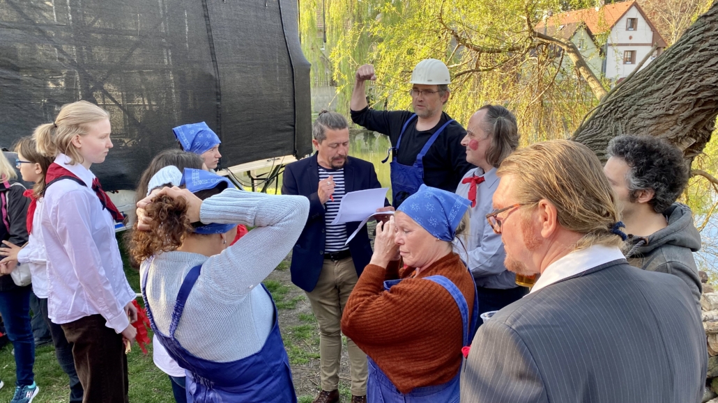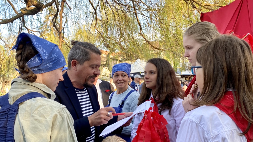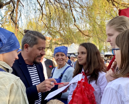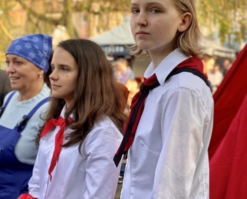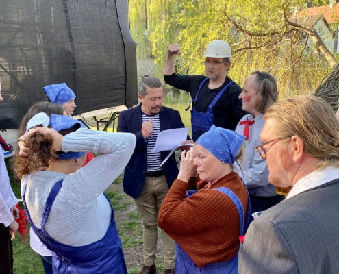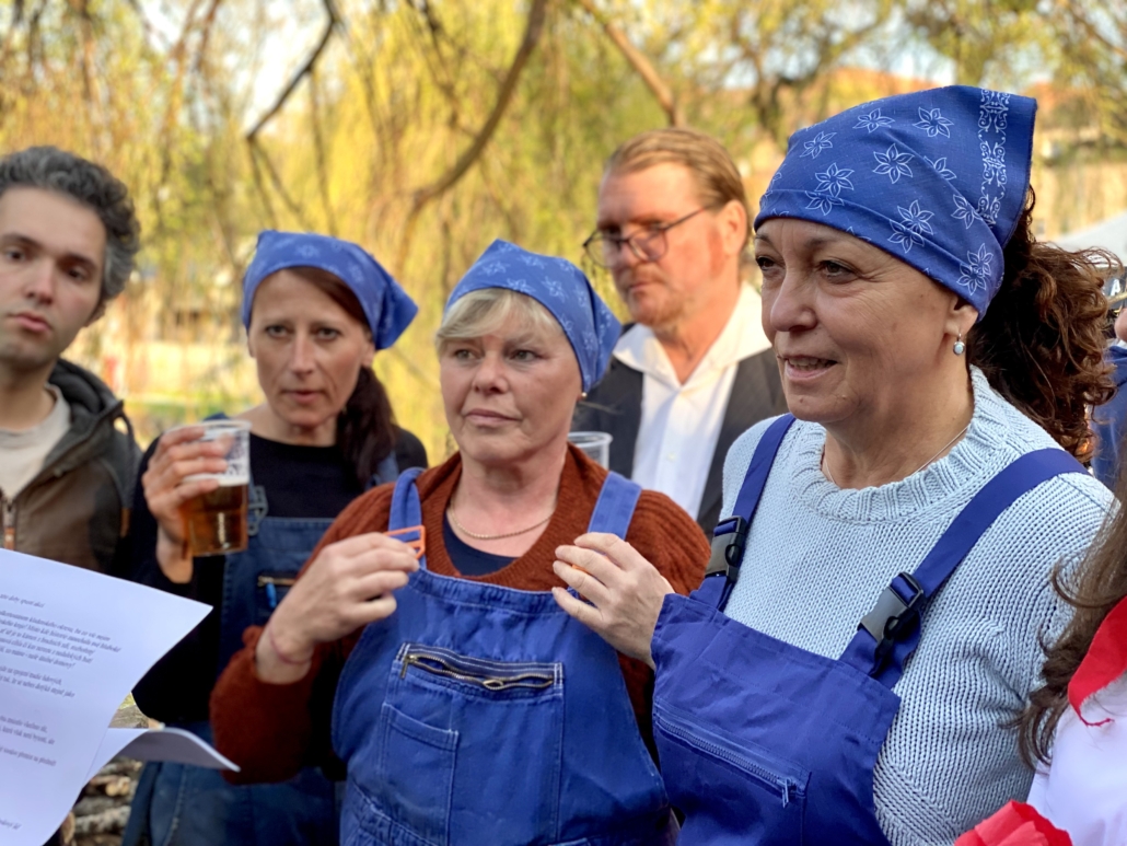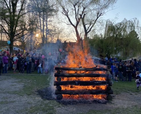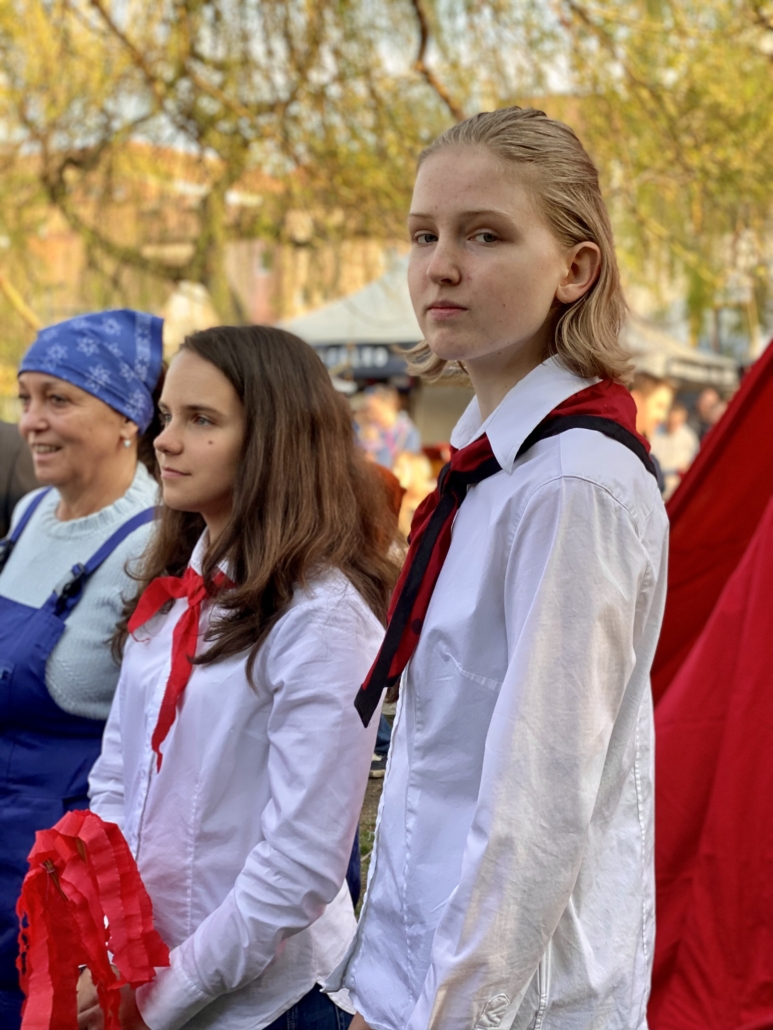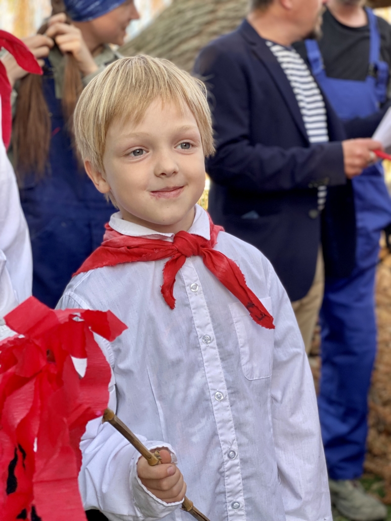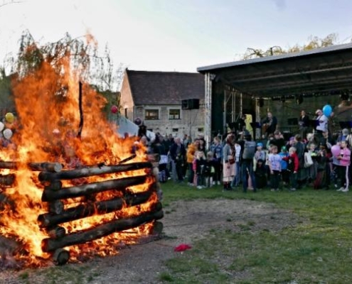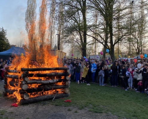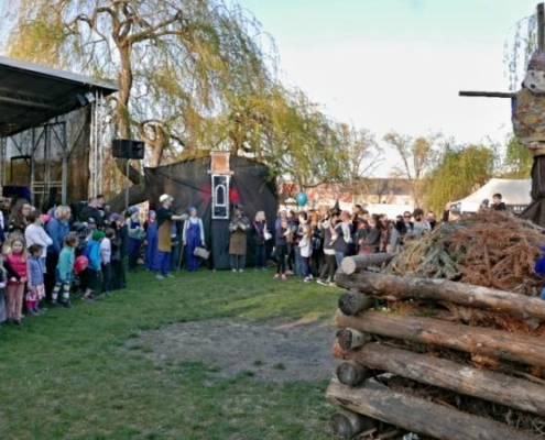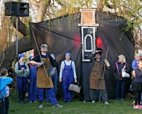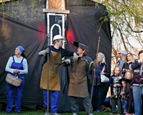 Letos jsme pojali zapalování čarodějnic v duchu místní dlouholeté ocelářské tradice jako slavnostní odpich vysoké pece. V akci jak vystřižené z filmového týdeníku padesátých let komentovaný rozhlasovým moderátorem nemohly chybět pracovití odpichovači, krásné svačinářky a samozřejmě nezbytní soudruzi z kraje, které vítali děti s mávátky. Slavnostní odpich se vydařil a tekoucí zlato našeho kraje doputovalo až k ohni a zaplálo vatru postavenou místními skauty. V ohni pak jako symbol odporu k minulému režimu skončila i mávátka a s nimi všechny zločiny a nešvary té doby.