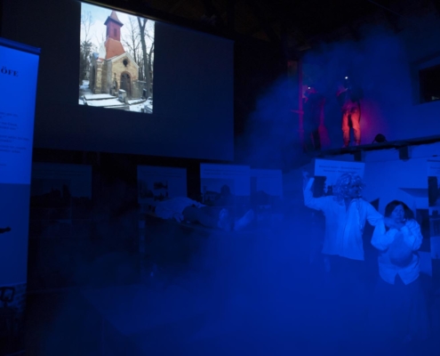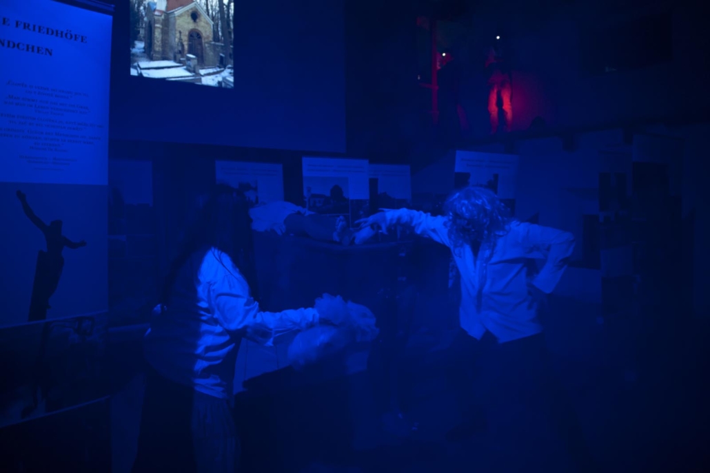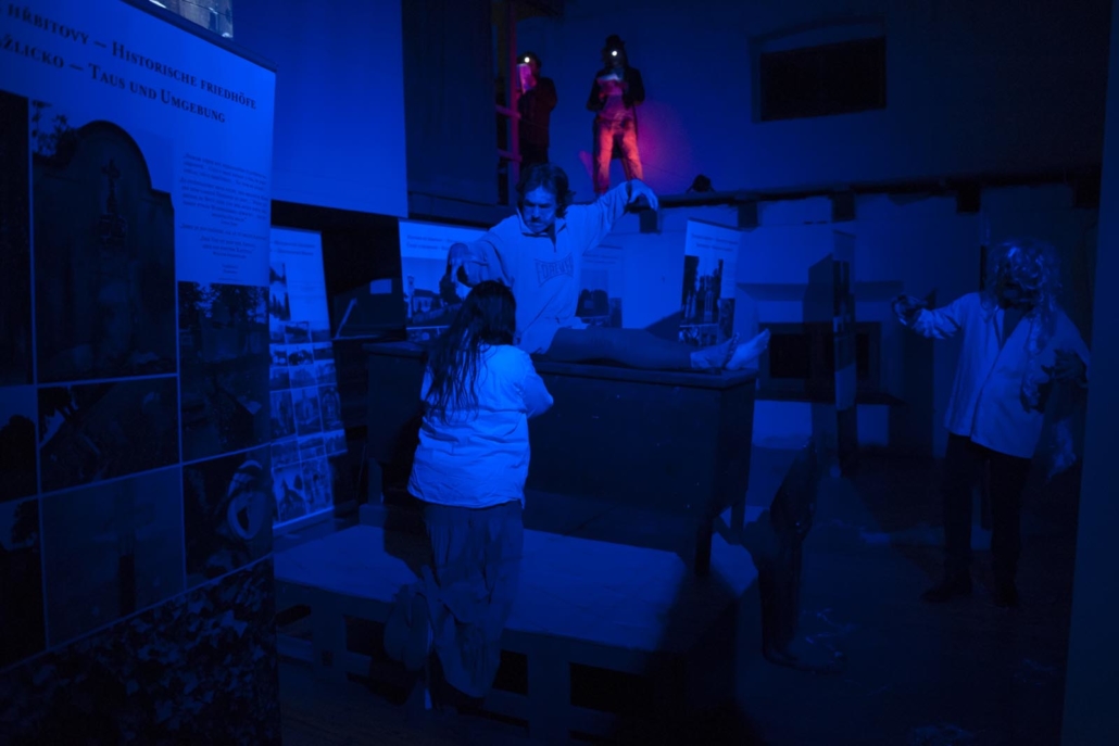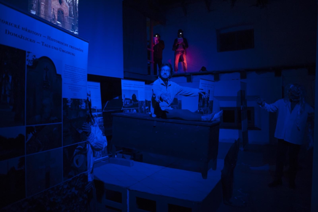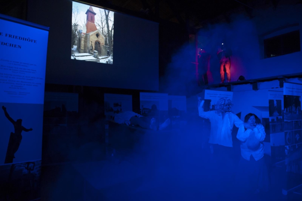 Dernisáž výstavy Historické hřbitovy, dramatatizace Svatebních košilí J. K. Erbena. 12.4.2019, Galerie Sýpka