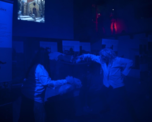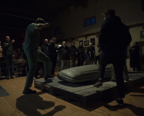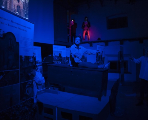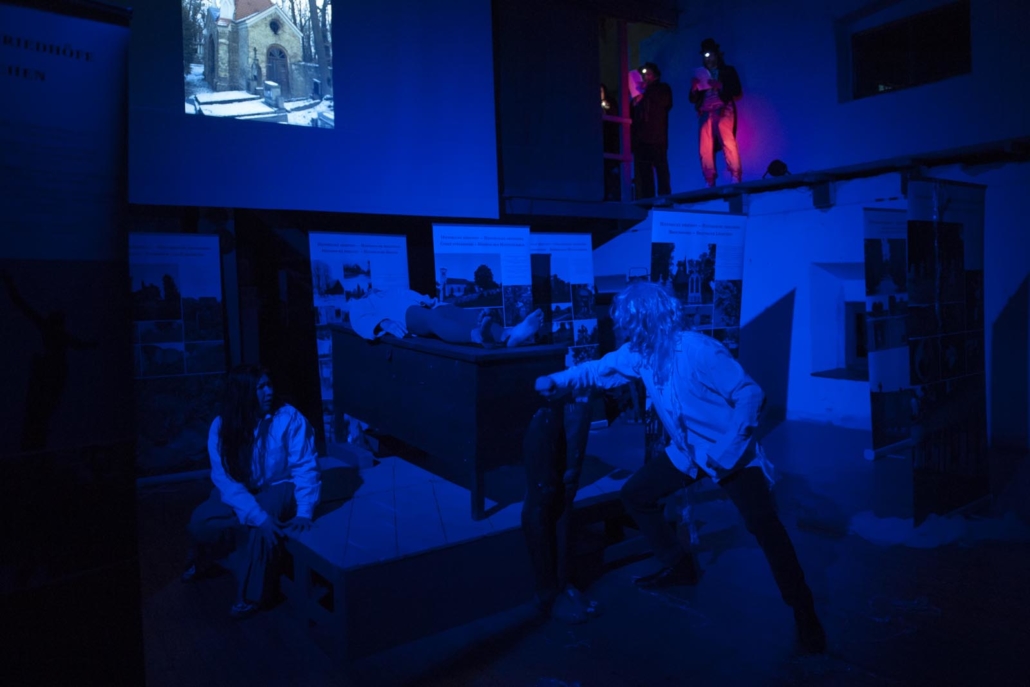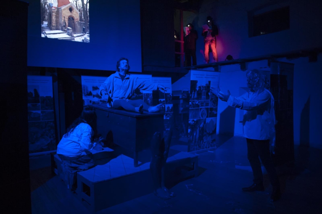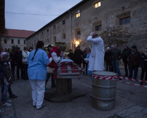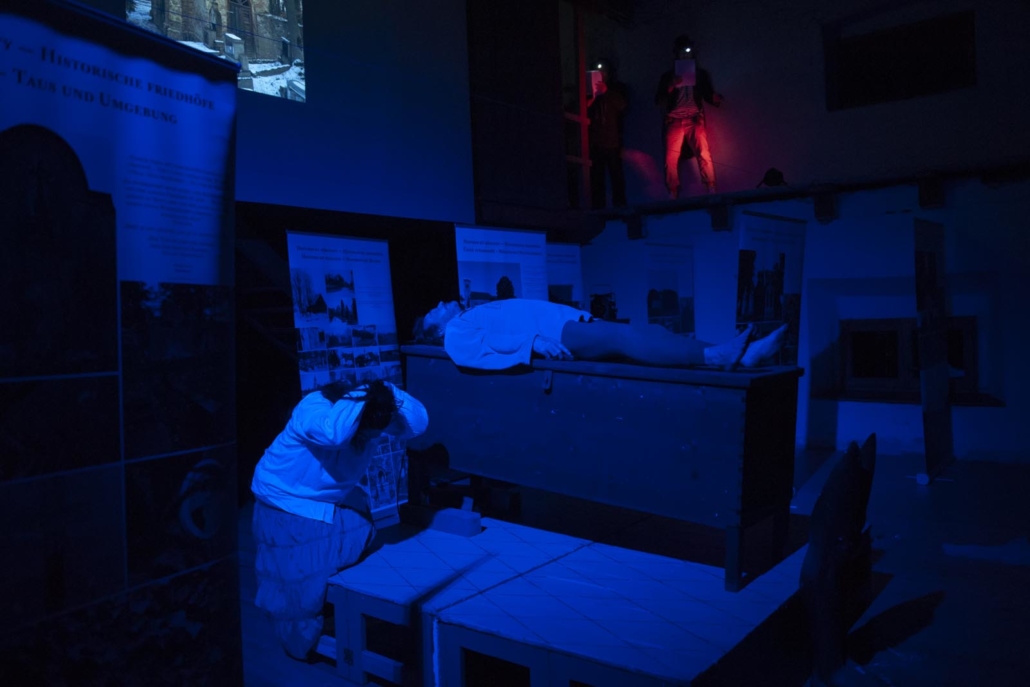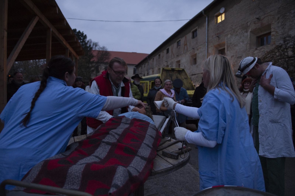 Dernisáž výstavy Historické hřbitovy, dramatatizace Svatebních košilí J. K. Erbena. 12.4.2019, Galerie Sýpka