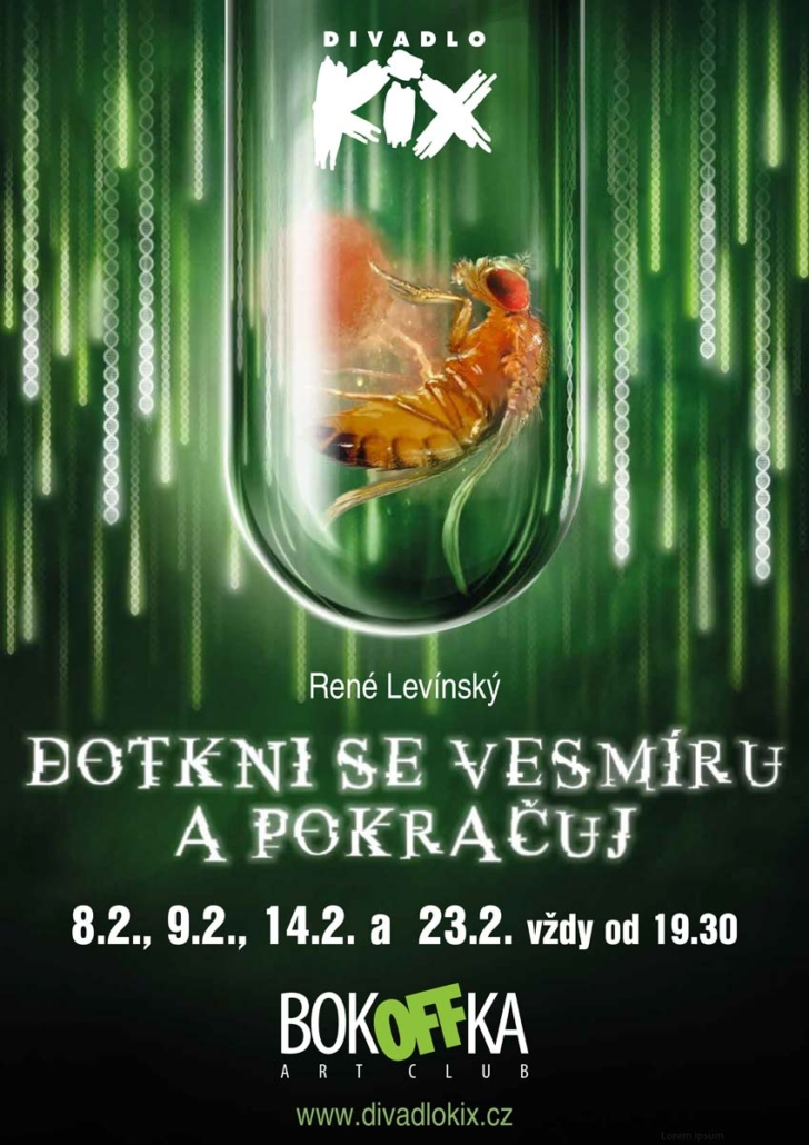 PRESS SPACE TO CONTINUE – legendární herní a počítačová hláška oznamující, že bez aktivního vnějšího impulsu systém uvízne ve strnulé netečnosti. Jakmile však nedočkavý uživatel klepne do největší klávesy, věci se dají do pohybu… Jemná lingvistická hříčka nalezená ve strojovém překladu hlášky nejenže dává jméno divadelní hře René Levínského, ale odkrývá až existenciálně-metafyzický rozměr tohoto téměř mimoděčného pohybu. Ale co to vlastně znamená? Kam až bude pokračovat naše nedočkavost? Přijde snad Mesiáš, který bude vědět kudy dál? Je rozumnější uznávat staromódní étos, nebo dát jasnou zelenou vědeckému pokroku? Ano, ano, to jsou některé z mnoha otázek, které divákovi předloží naše nová inscenace. Fiktivní(?) příběh o genetické biologii, vnořený do zcela konkrétní reality, však nepředkládá mnoho odpovědí. Snad způsobí, že si sami položíte další otázky, na něž nebudete znát odpovědi, ale zato se určitě dozvíte víc, než byste se odvážili zeptat. Ale nebojte se ničeho, vždyť smích je, a z hlediska principu logické úspornosti zvlášť, to nejlepší řešení ze všech možných.
