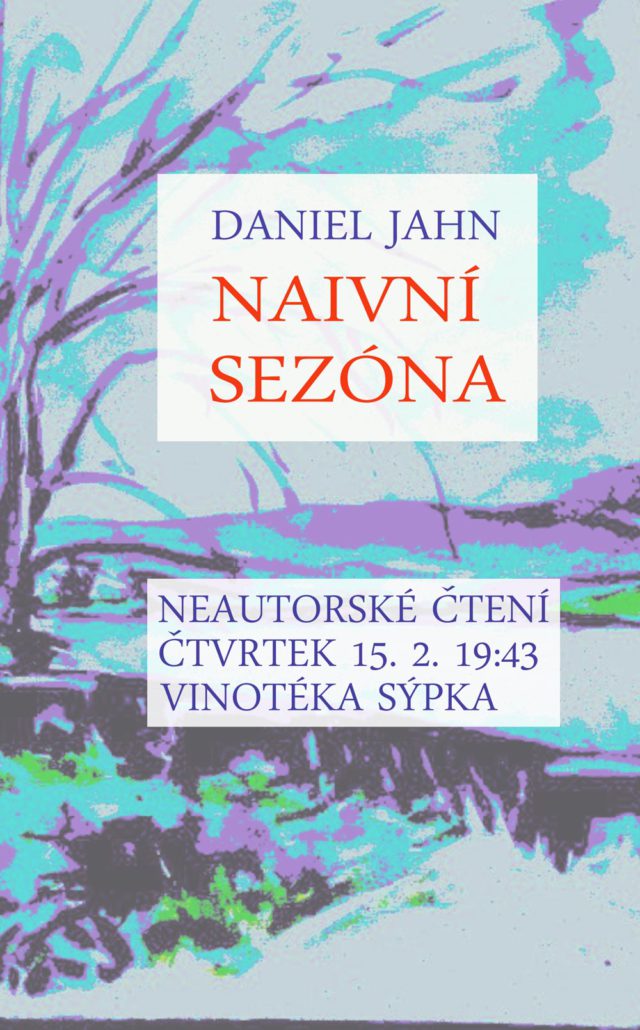 Hlášení. Ve čtvrtek 15.2. v 19:43 se koná ve Vinotéce Sýpka neautorské čtení z knihy Daniela Jahna Naivní sezóna. Čtení proběhne v soudružské atmosféře členů posudkové komise Divadla KiX.  Během čtení se bude podávat gothajský salám s octem a cibulí. Přijďte okusit dobu reálného socialismu v takzvané husákovské době. Dobové oblečení a doplňky jsou vítány. Konec hlášení.