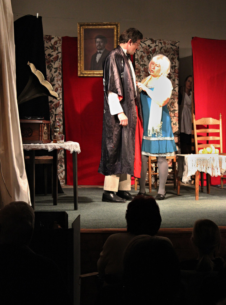 …a jsme rádi, že hra nejen pobaví, ale nenásilnou formou diváka i vzdělává. Mluvím především o širší veřejnosti dosud neznámé léčbě ledvinových kolik pomocí máty peprné.