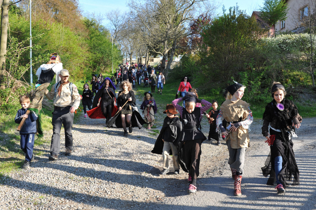 Na letošní Filipojakubskou noc nám Vyšší Mocnosti projevily svou přízeň a sluneční páku zařadily na stupeň „příjemno, místy úsměvno, až milo“. Příznivá klimatická úprava však neušla pozornosti čarodějných bytostí, které se rády slétávají na Petrových kamenech. Tu, v podobě čmoudů a par, jedna za druhou vylézaly ze svých přízračných nor a odlétaly ke svým bilančním rejům nad buštěhradskou haldu, aby se v podvečer zhmotnily v ulici Jednookého na plácku U Bečvářů – seřadišti čarodějnického pochodu přízraků směrem na Babky.
