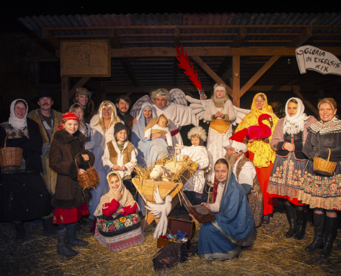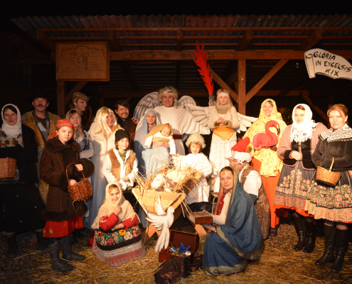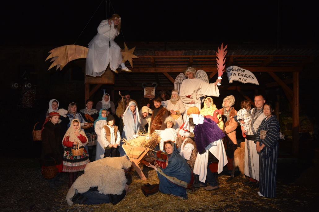 Pestrou mozaiku Kristova narození vytvořilo divadlo KIX s přispěním buštěhradských sousedů.